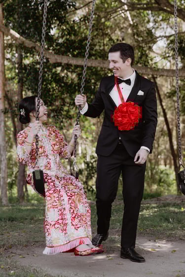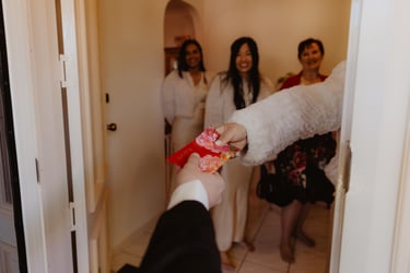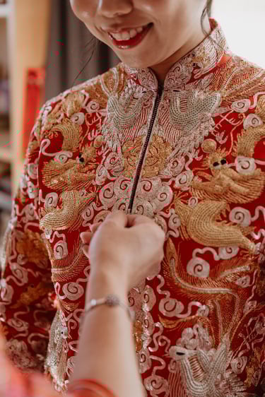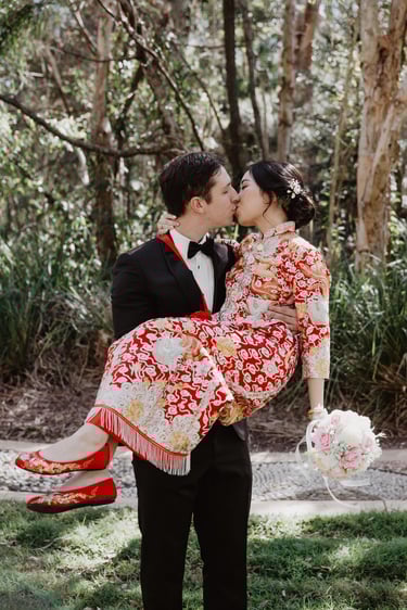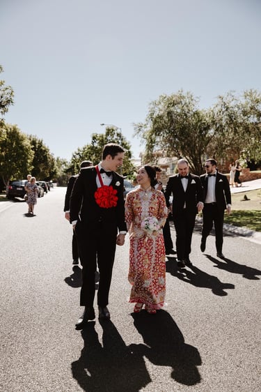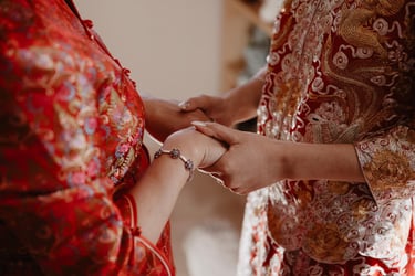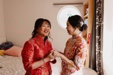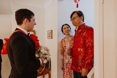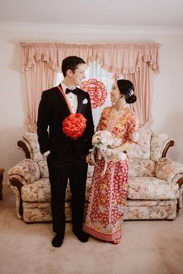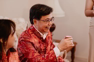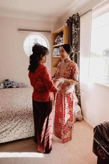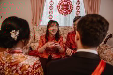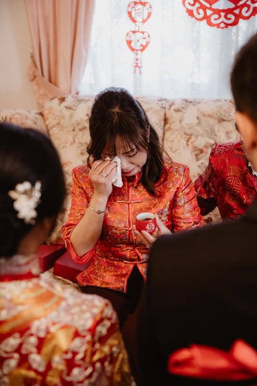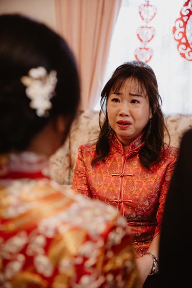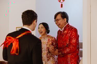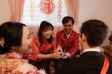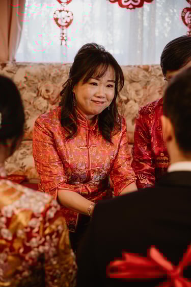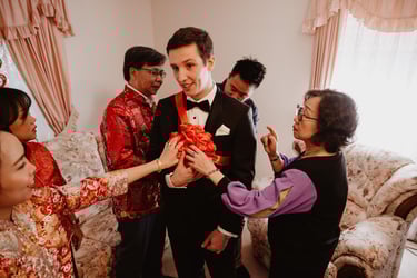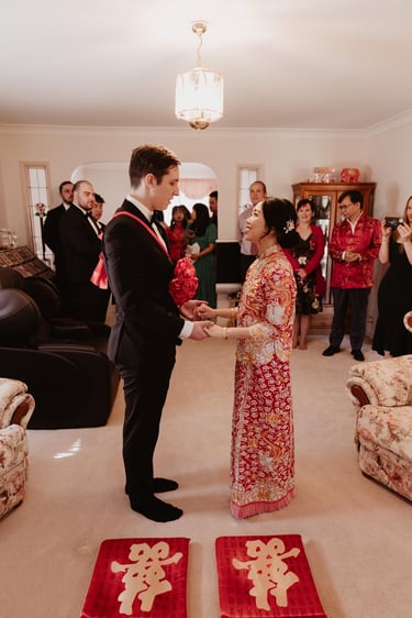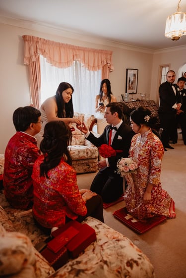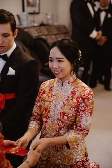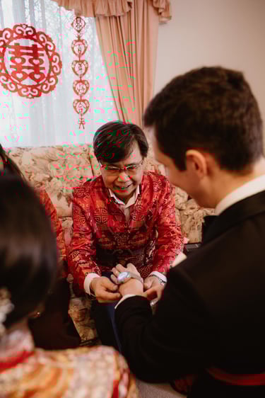 Their tea ceremony was so heartfelt and sincere. Kneeling before Rachel's parents signified honouring how much they had done in her life, providing and caring for her, for so many years. This was an emotional moment... I almost teared up. They were so proud of their daughter and moved by the person she has become, ready to start her own family. A rite of passage.