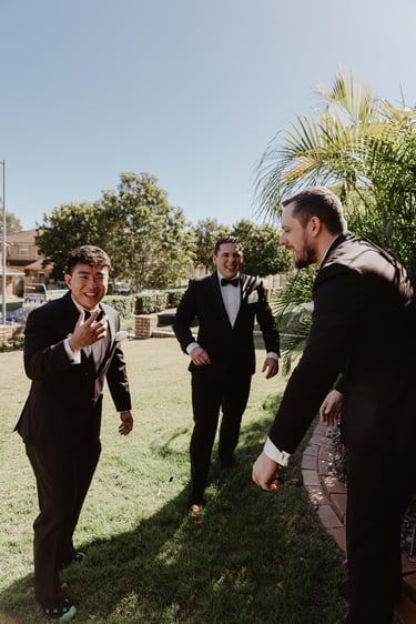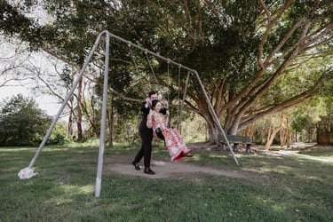 We went to their local park down the street to take some group photos, as the sun was extremely harsh. It was more magical than I expected. After the group photos, Rachel and Greg smiled at a swing set. It was the one they fondly remember sneaking off to at 2am in the morning, when their dating was still a secret. We took a few cute pictures at this meaningful, little spot; they were giddy and couldn't stop smiling at a memory forged long ago. These spontaneous, special moments are always my favourite to capture.