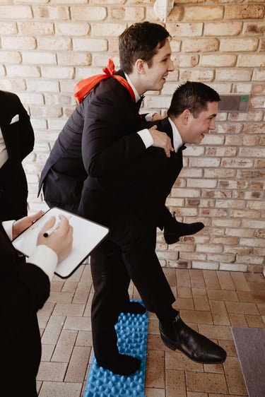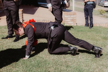 I'm always down to capture some Hongkongese Door Games! The groom and groomsmen must pass a series of challenges set by the bridesmaids, to "prove their worth", before entering and seeing the bride. This tradition has been practiced for centuries and now takes on a lighter, hazing tone. The three challenges Rachel's bridesmaids set for Greg were proving his strength by doing 200 push ups, his boldness by the groomsmen passing seaweed via lip service and his intellect by solving mathematics while piggybacking on an acupuncture mat (how much more Asian can you get?).
